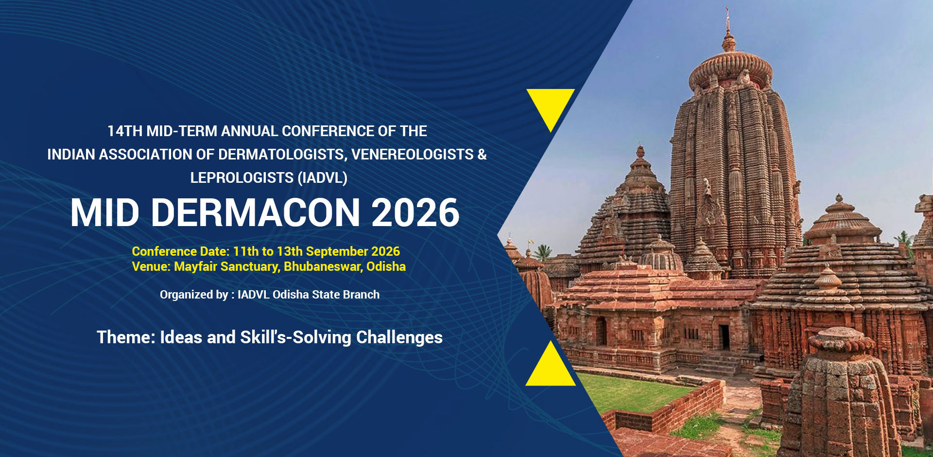 It gives us immense pleasure and a deep sense of honour to welcome you all to MIDDERMACON 2026, the Annual Mid-Year Conference of Indian Association of Dermatologists, Venereologists and Leprologists (IADVL), being hosted in the spiritually enriching and culturally vibrant city of Bhubaneswar.
